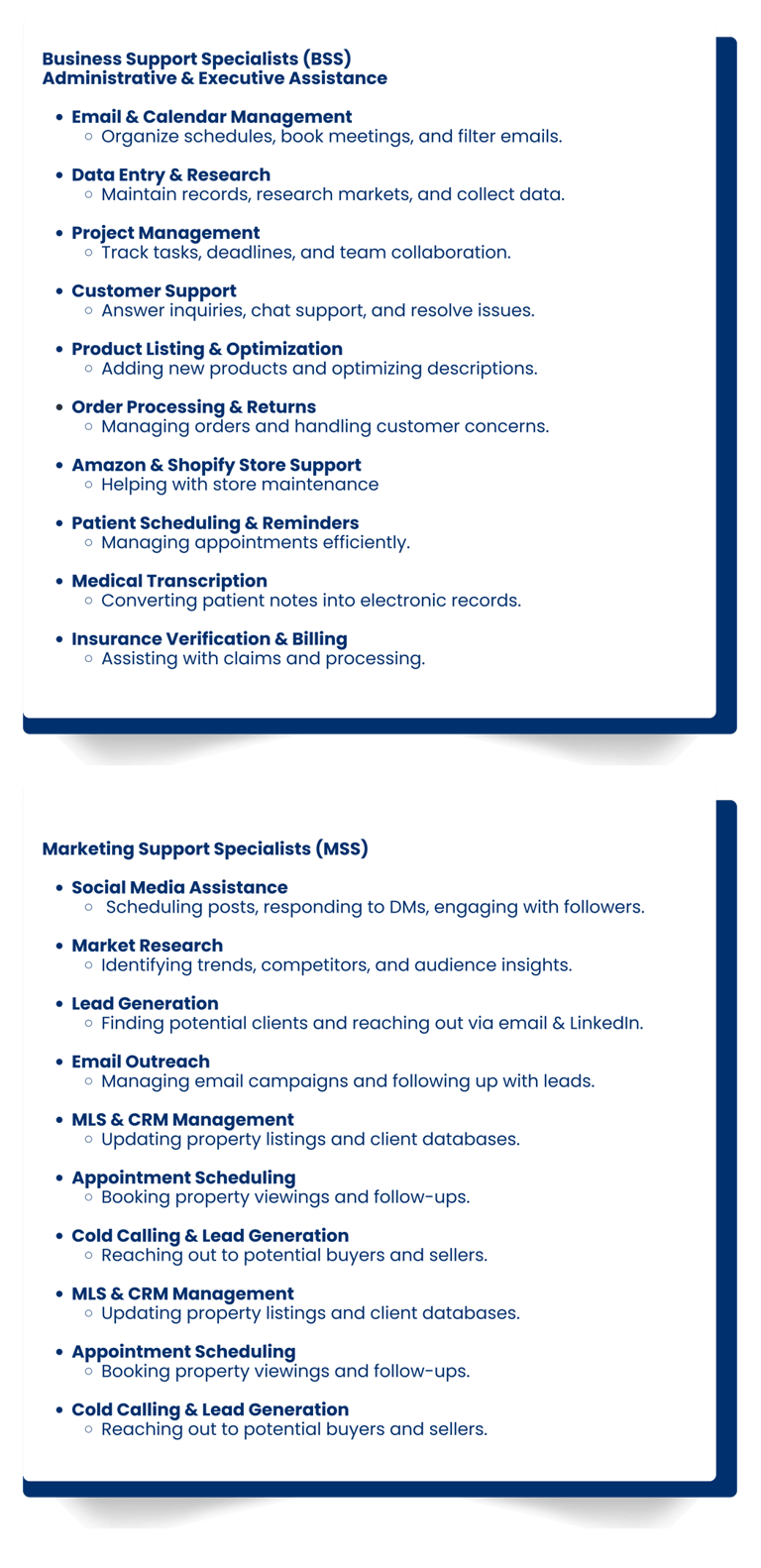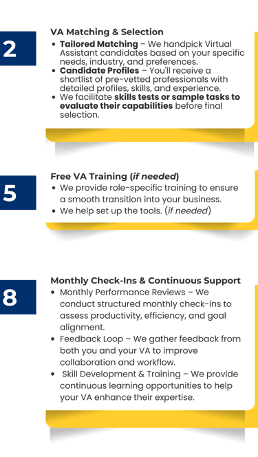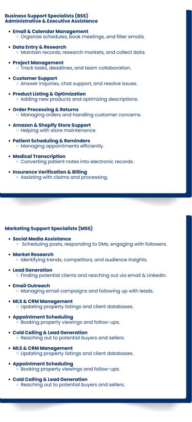 Increase efficiency and productivity by delegating essential business tasks such as administrative support, customer service, data management, scheduling, and sales assistance to a skilled professional.